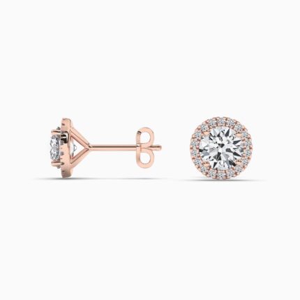 Classic 18K solid gold halo studs with 2.20ct round lab-grown diamonds. IGI-certified brilliance in EF color and VVS–VS clarity.