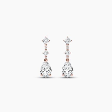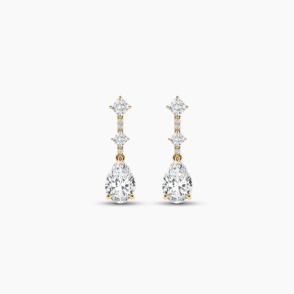 18K gold dangle earrings with 2.61Ct EF-VVS pear, round & princess-cut diamonds. IGI certified, 22.66mm elegant statement drops.