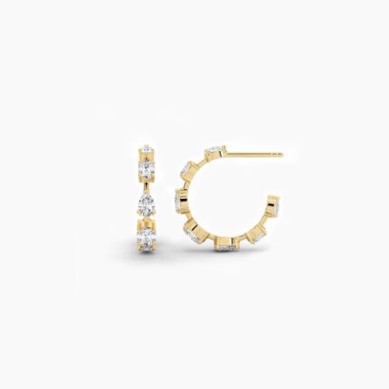 18K solid gold hoop earrings set with 2.23ct pear and oval-cut diamonds. Elegant, IGI-certified design with EF color and VVS–VS clarity.