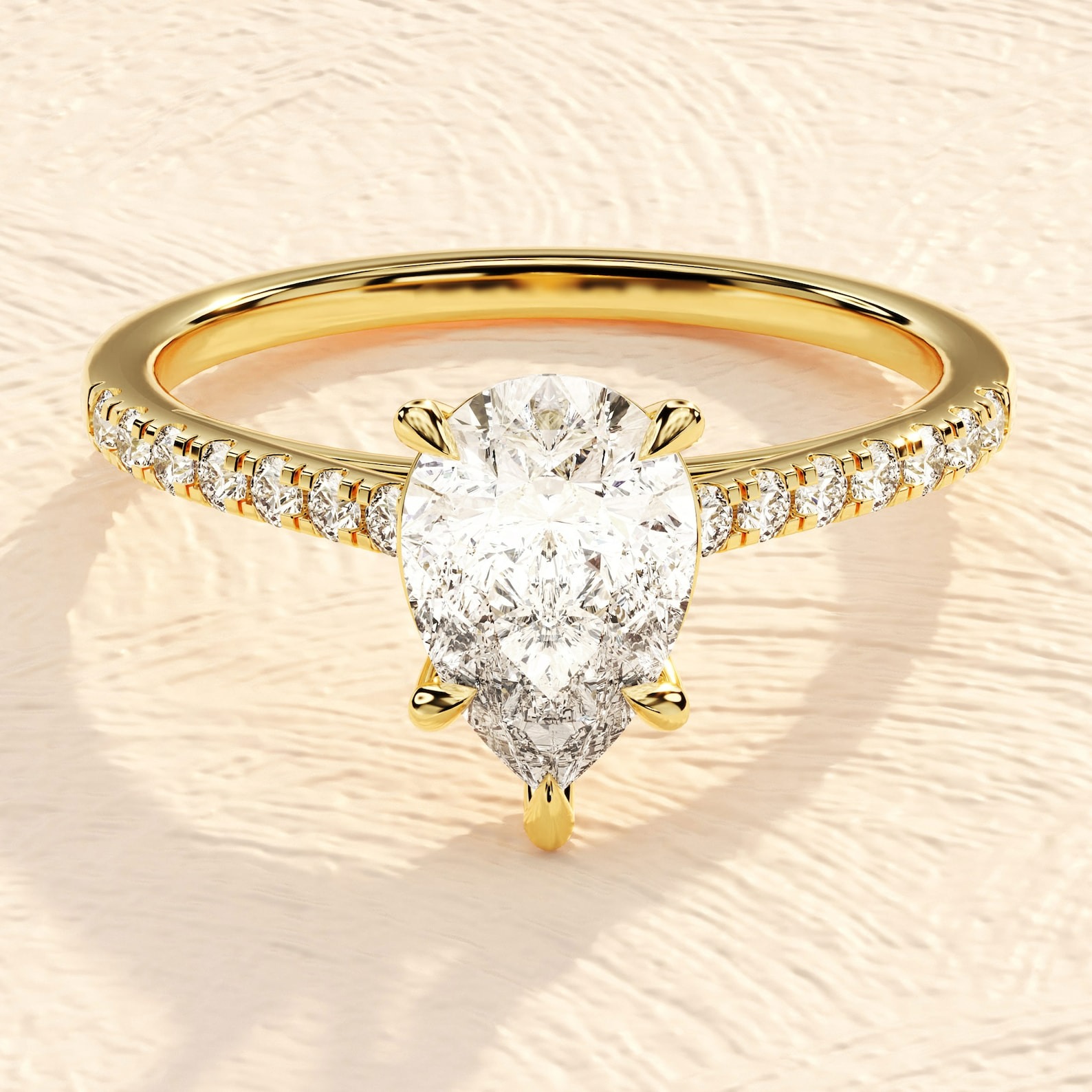 Available in Rose Gold, Yellow Gold, and White Gold, this engagement ring offers versatility to match every style. Backed by IGI certification, it guarantees authenticity, quality, and exceptional craftsmanship. A stunning piece that celebrates love in its purest form, this pear cut ring is perfect for creating unforgettable moments.