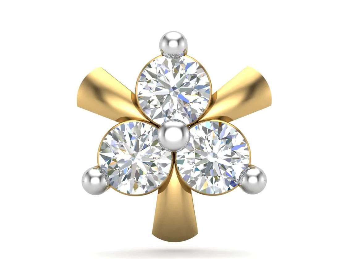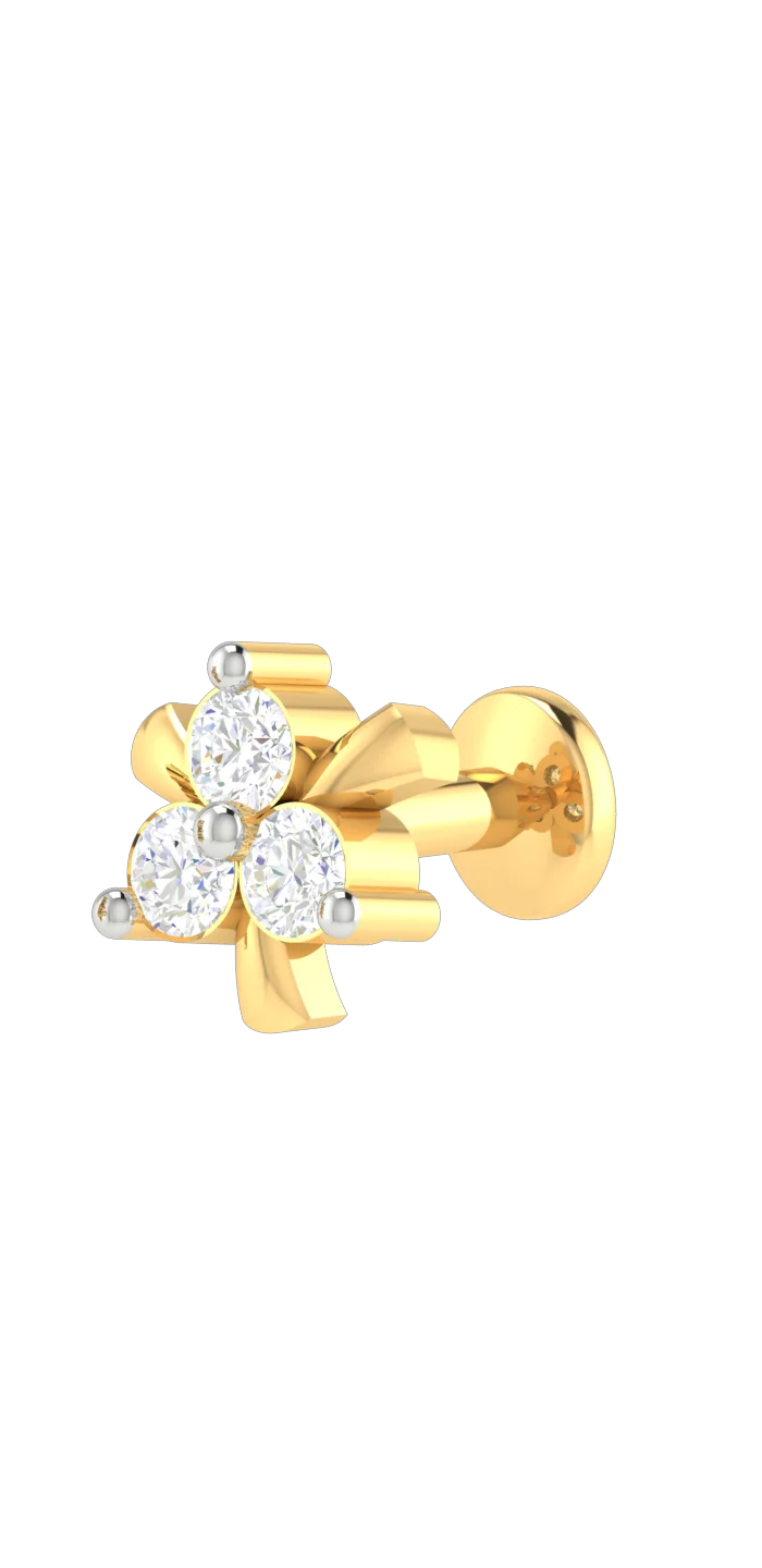 18K Solid Gold 0.08CT Trinity Diamond Nose Pin