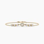 The 18K Solid Gold Pear & Round Diamond Chain Bracelet by Shinelle by Neelam is a refined fusion of artistry and modern elegance. Designed with a graceful balance of shapes, this bracelet highlights the sophistication of a singular pear-cut diamond paired with round brilliant diamonds, creating a striking play of light with every movement.
