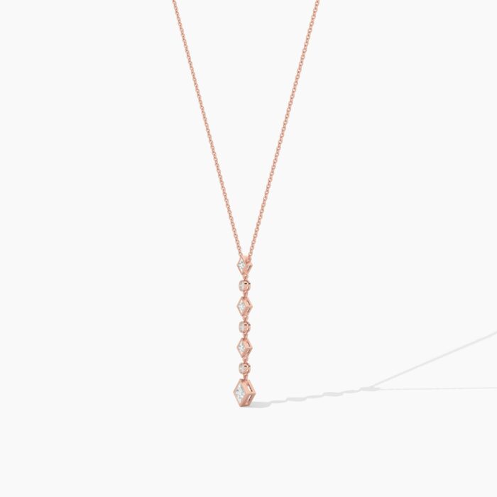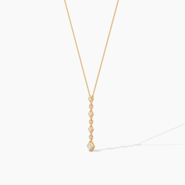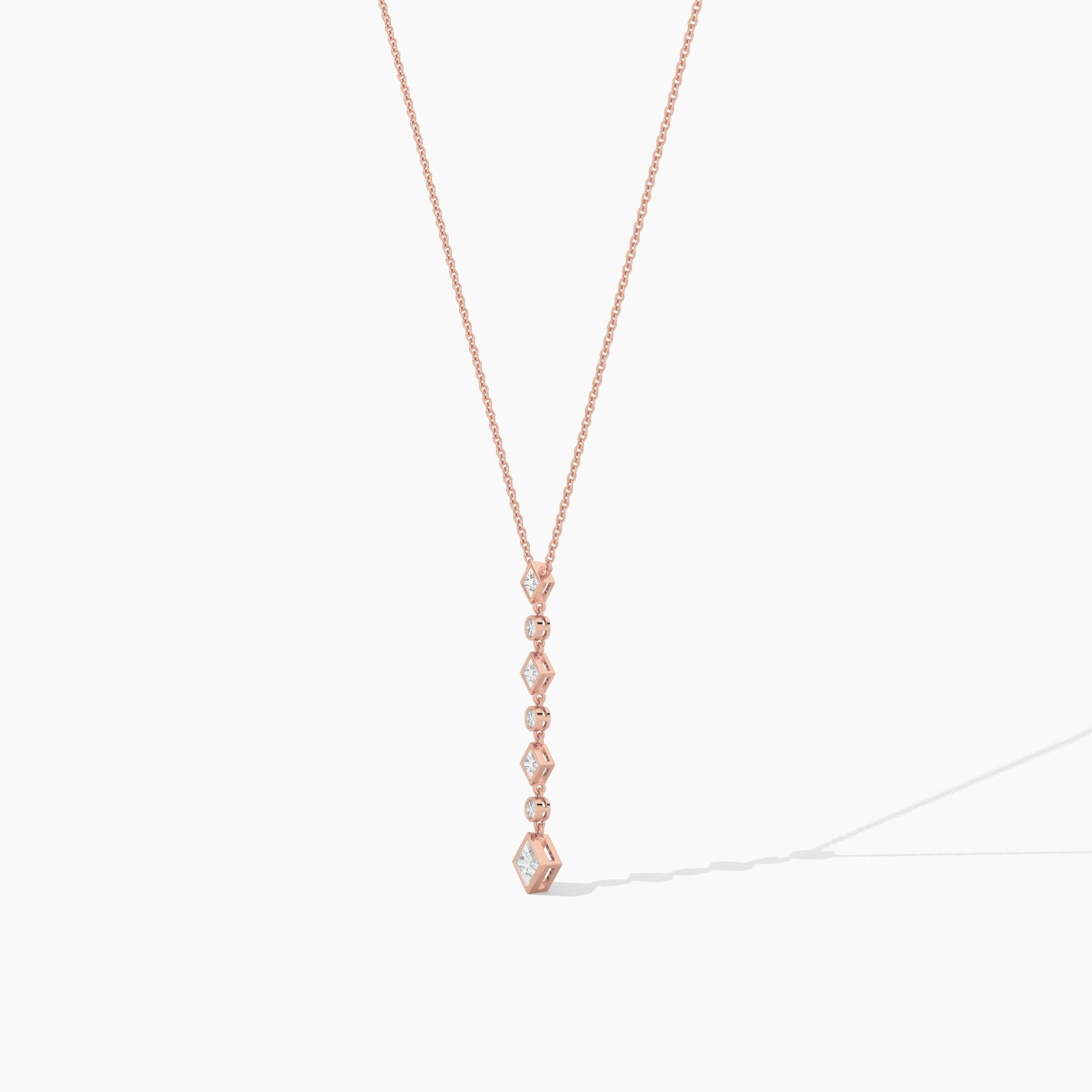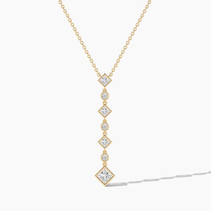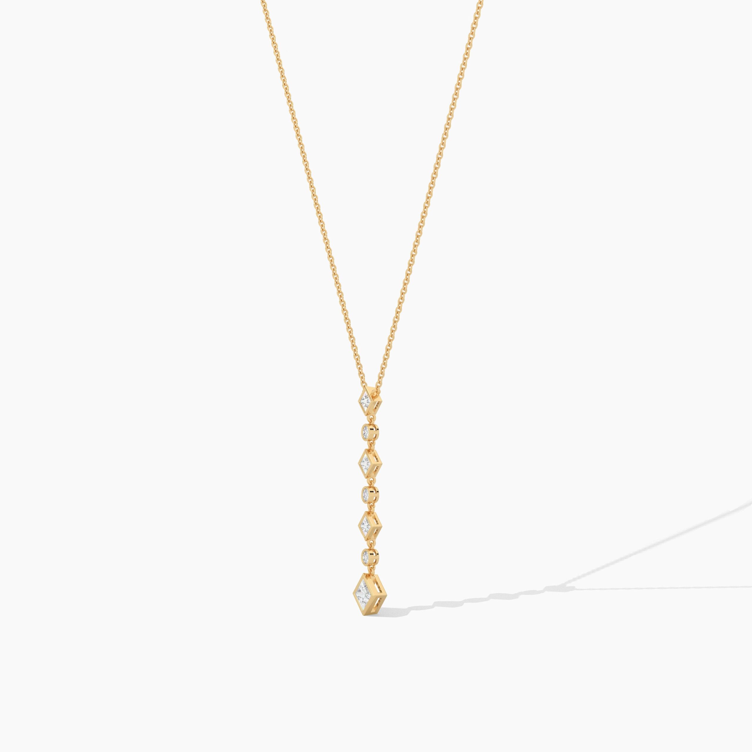 Elegant 18K Solid Gold Lariat Necklace featuring 1.15 Ct princess and round-cut diamonds in a timeless drop design. IGI certified brilliance.