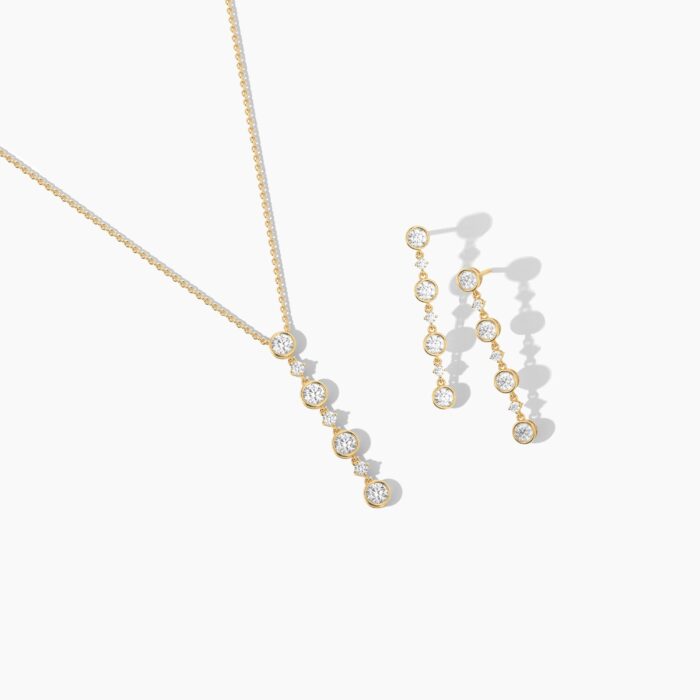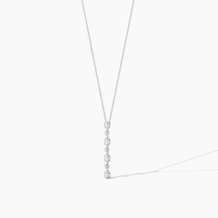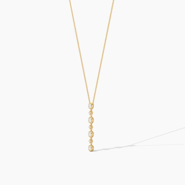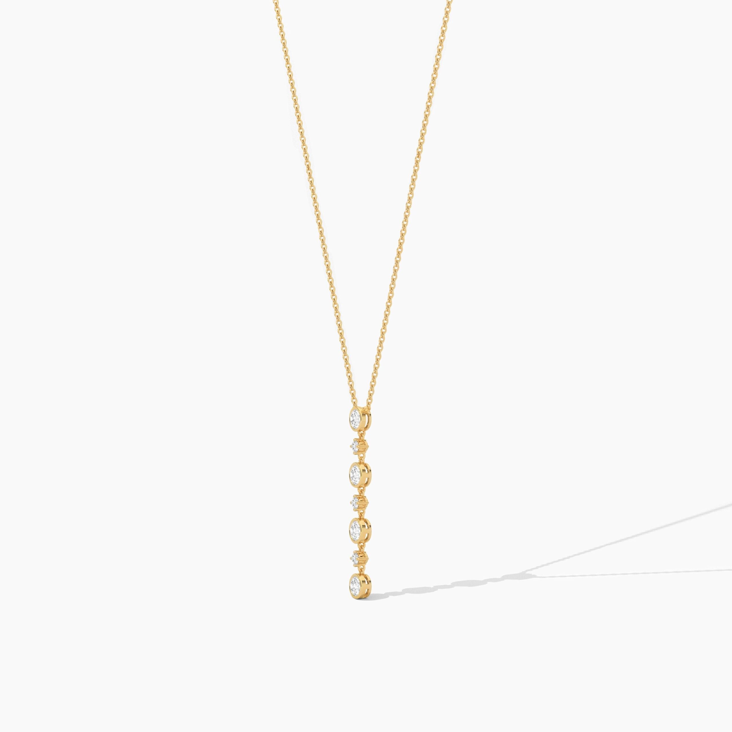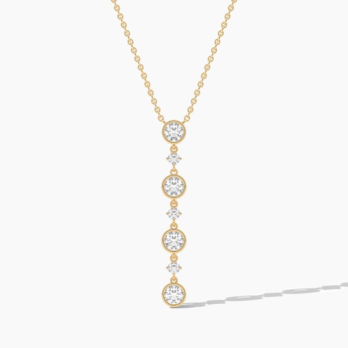 A timeless 18K Solid Gold Lariat Necklace featuring 1.15 Ct round-cut diamonds in prong and bezel settings, IGI certified for brilliance.