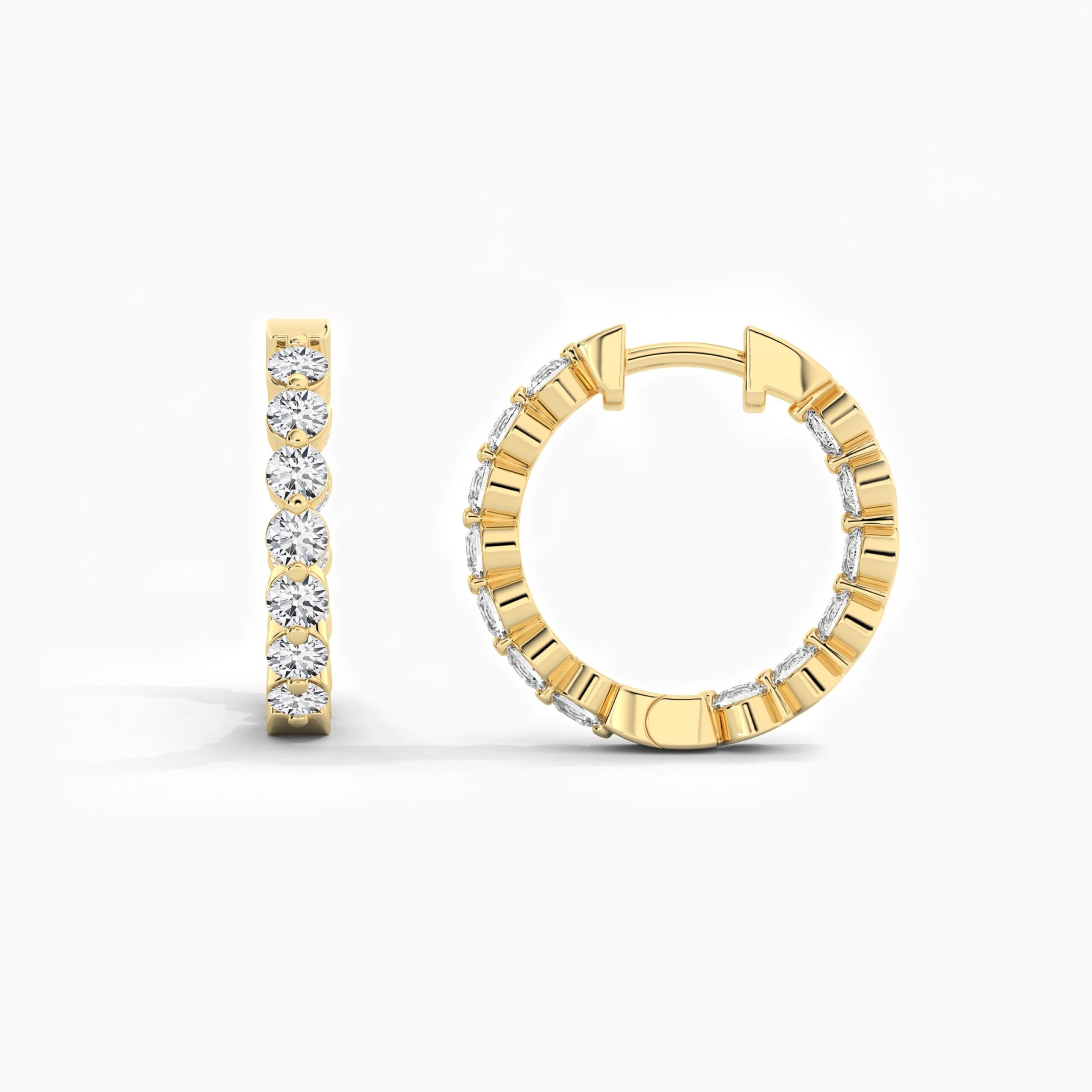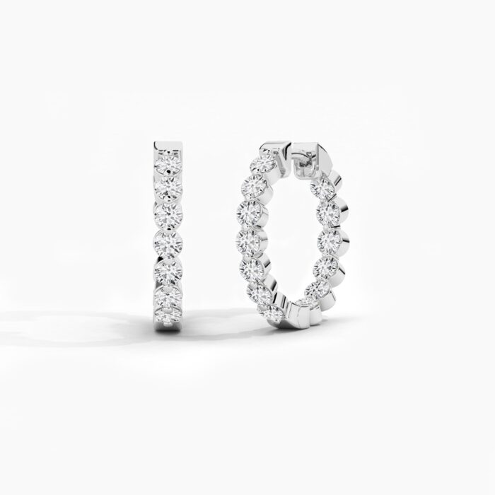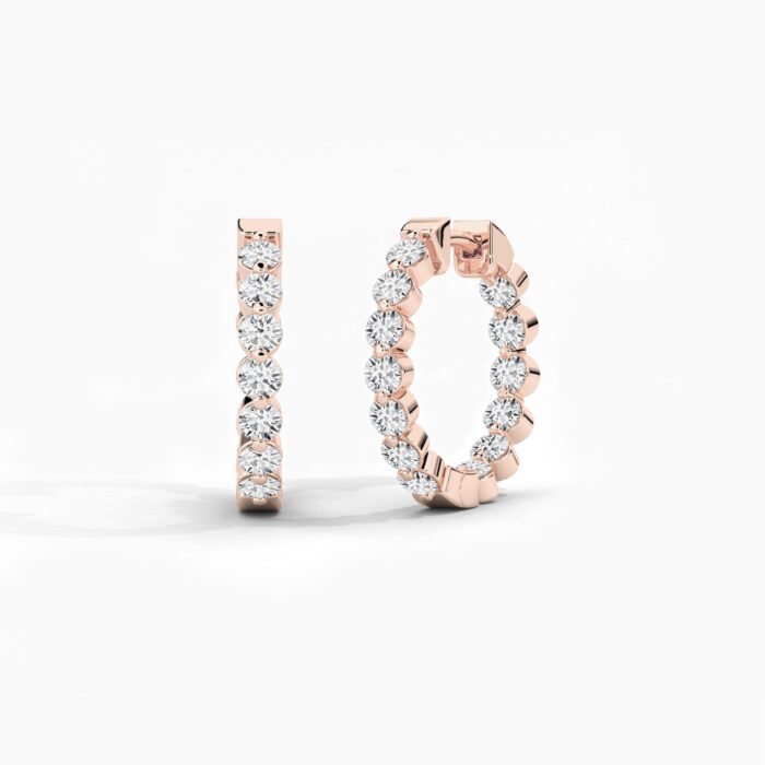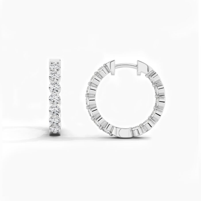 Measuring 15mm in width, these hoops strike the perfect balance—bold enough to make a statement, yet comfortably sized for versatile wear. The round-cut diamonds, meticulously set to maximize sparkle, create a continuous flow of light that enhances their timeless appeal. Whether styled with an evening gown or paired with a tailored blazer, these earrings seamlessly transition from day to night.