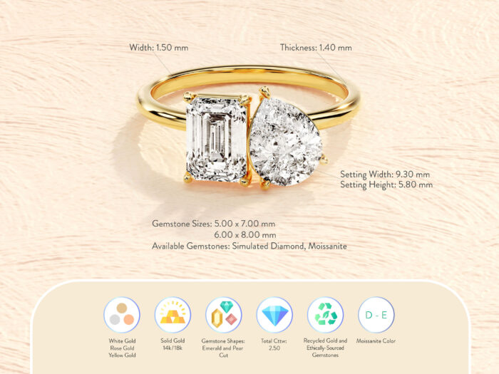 Be the first to review “18K Solid Gold 2.50 CT Emerald & Pear Diamond Toi et Moi Engagement Ring” Cancel reply