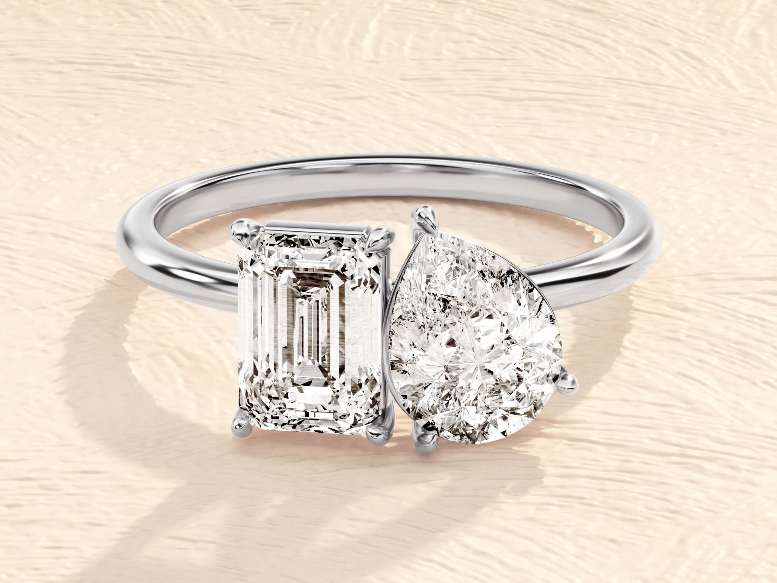 Home Engagement Ring Emerald Cut Lab Grown Diamond Engagement Ring 18K Solid Gold 2.50 CT Emerald & Pear Diamond Toi et Moi Engagement Ring