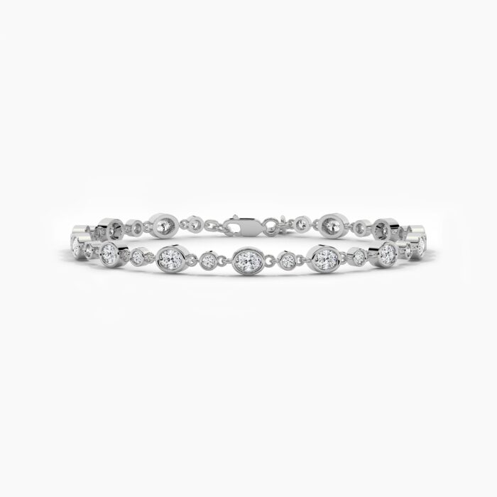 The diamonds, ranging from 4.00×3.00mm oval cuts to 2.00mm round accents, are carefully selected for their EF color and VVS–VS clarity, ensuring exceptional fire and unmatched brilliance. With a total carat weight that ranges between 1.75ct to 2.75ct depending on the length, this bracelet is designed to make a statement of luxury while maintaining a versatile and classic aesthetic.