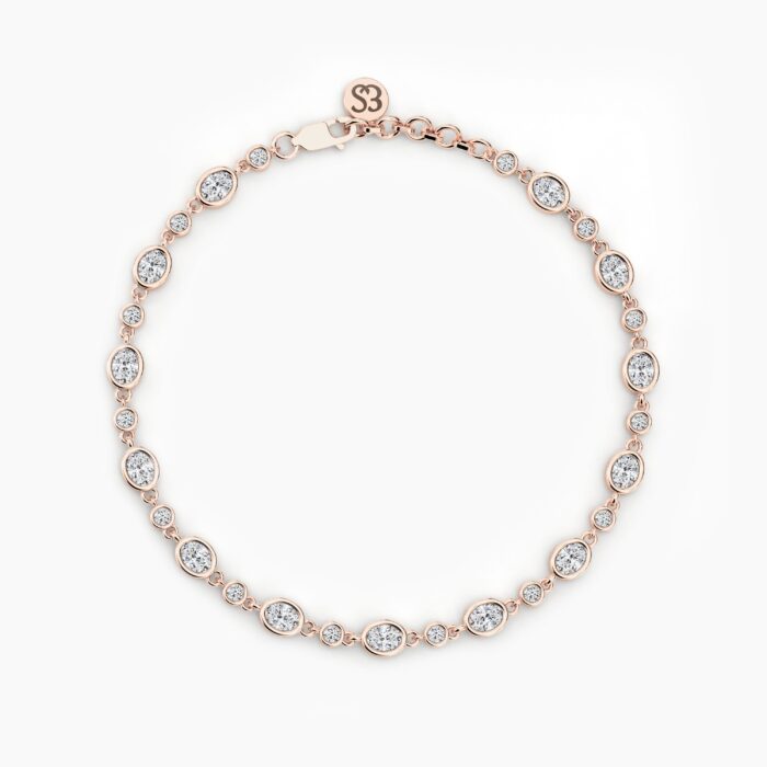The 18K Solid Gold Oval Cut Diamond Tennis Bracelet from Shinelle by Neelam is a timeless piece that blends refined artistry with radiant brilliance. Crafted from premium 18K solid gold, this bracelet features a captivating combination of oval and round diamonds set in perfect harmony, creating an elegant continuous flow of sparkle across the wrist.