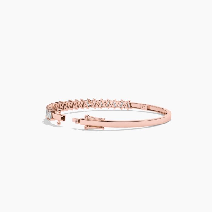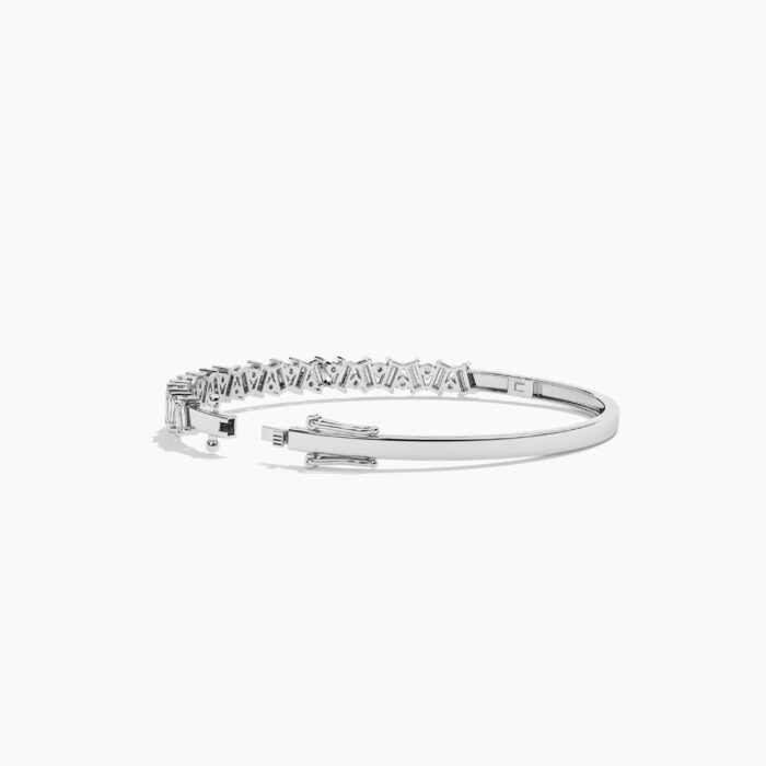 With 20 round diamonds and 19 baguette diamonds, this piece features a total diamond weight of 2.90ctw (±0.10ct), each stone carefully set to ensure maximum radiance. The EF color and VVS–VS clarity guarantee exceptional brilliance, making it a true statement of luxury. Measuring 3.00mm in width with a 2.00mm thickness, this bangle strikes the perfect balance between elegance and durability, making it ideal for everyday sophistication or special occasions.